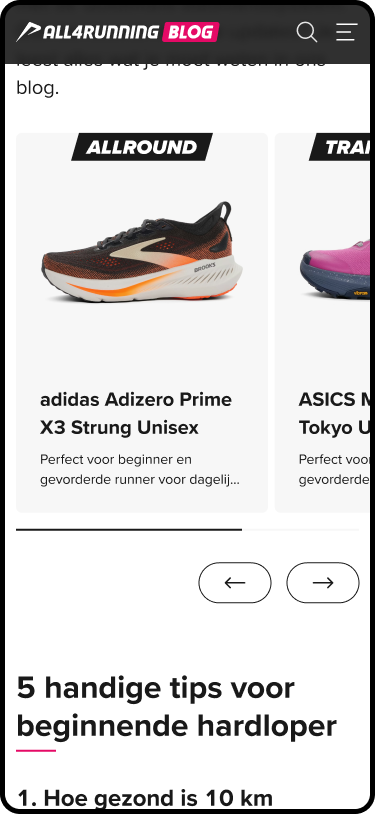 With the new blog environment All4running aims to communicate the running expertise of the company, inspire their readers and users and creating a higher conversion on the webshop by facilitating stronger links between the blog environment and the webshop.