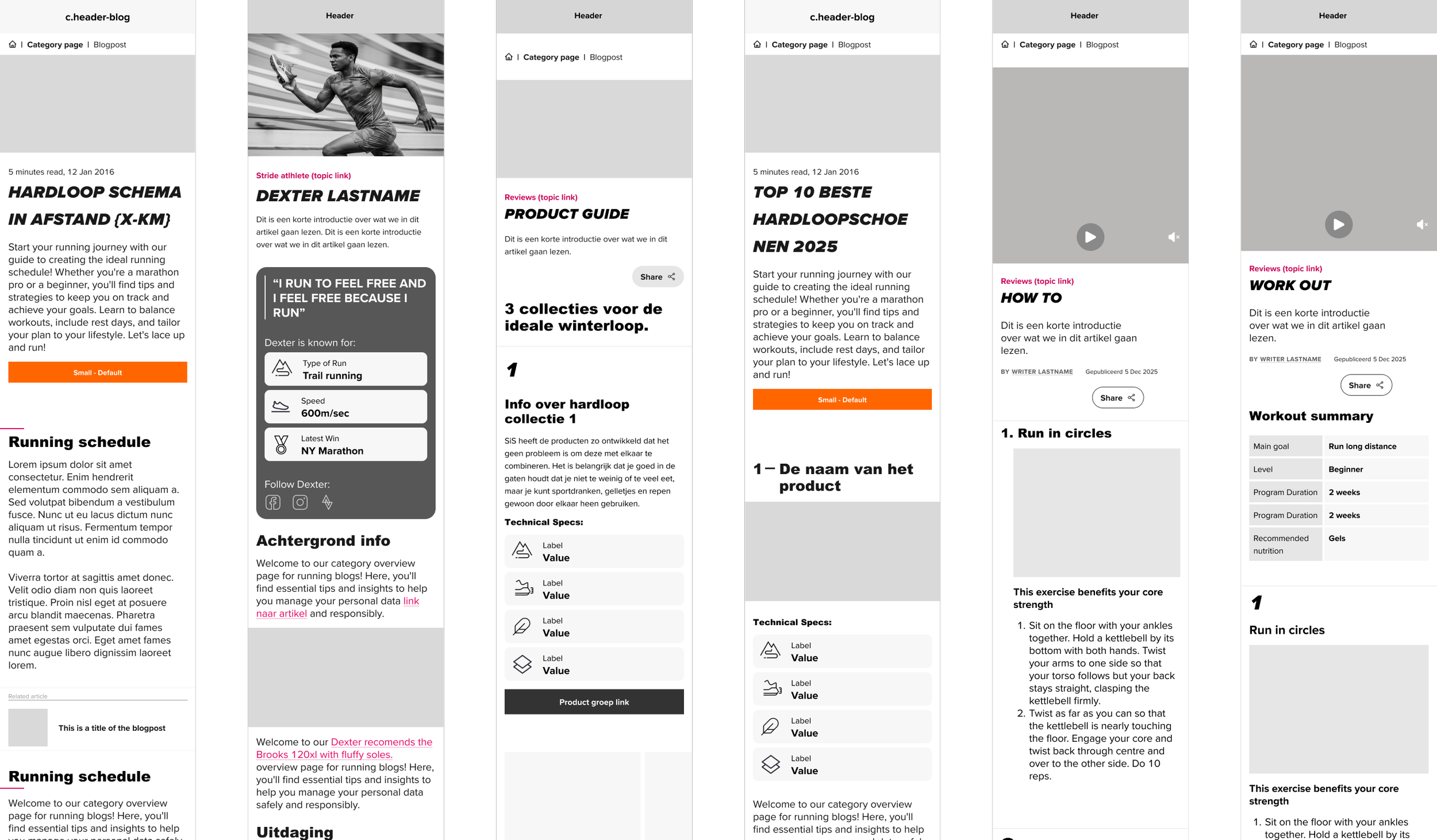 Delivered a complete UI design for the blog environment, consisting of 11 templates: a homepage, three category overview pages, and seven individual blog post templates.