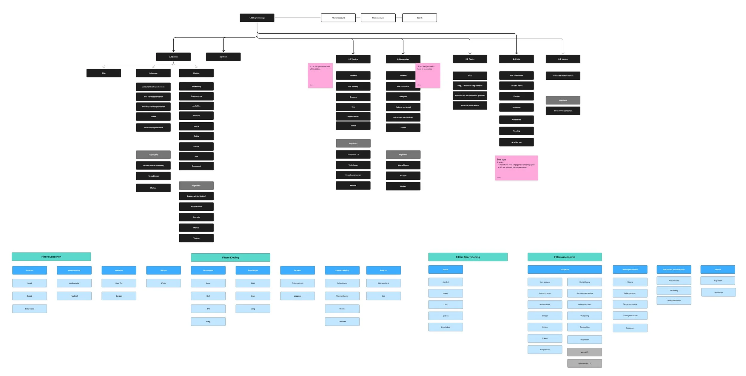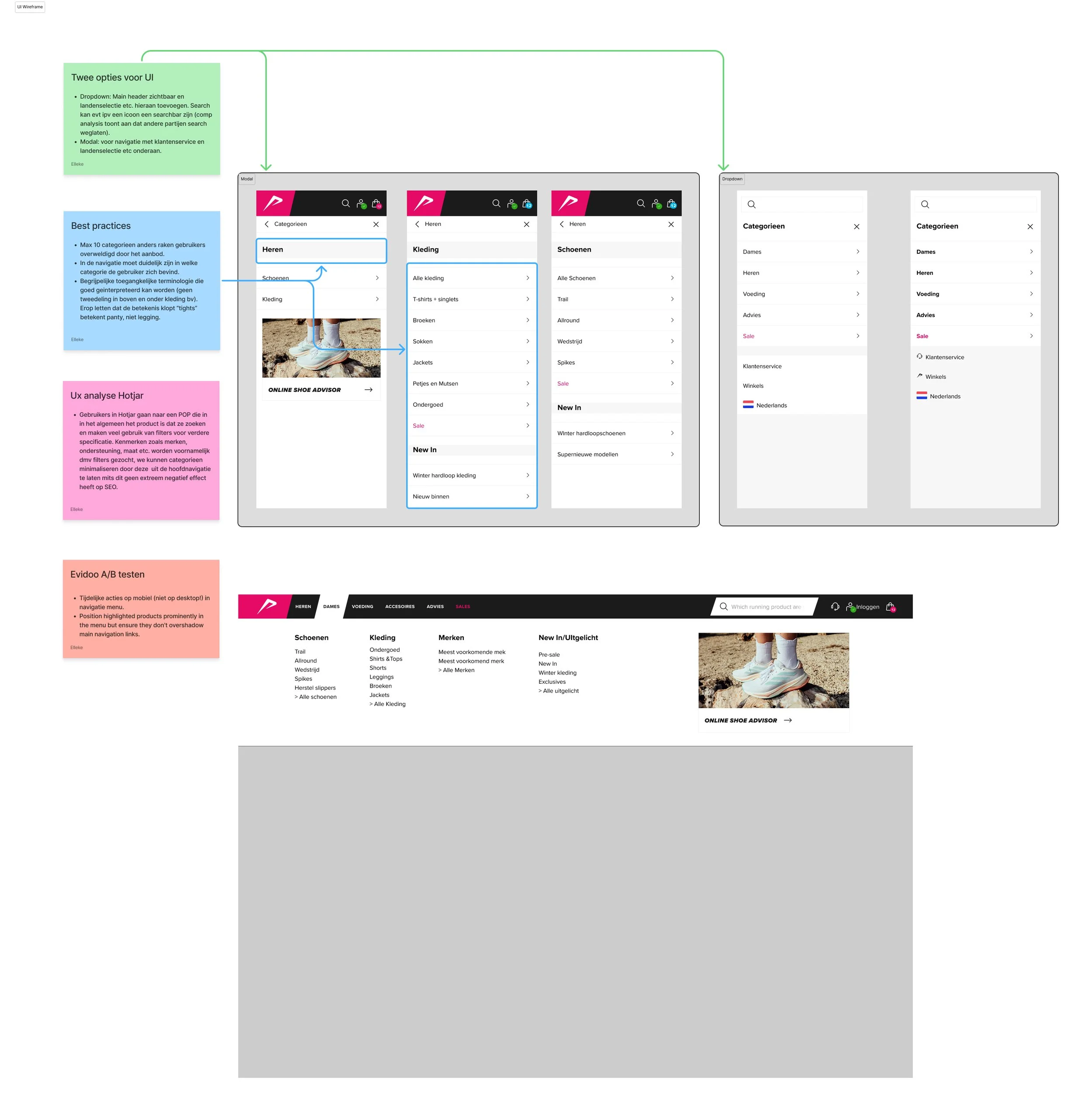 As the UX/UI designer, I facilitated several workshops to reorganize the categories and establish a clear distinction between the main menu navigation and the filter menu on product overview pages. Creating categories that are encapsulating a wider range of products and decreasing the User Journey leading to an overview page to a maximum of three clicks.