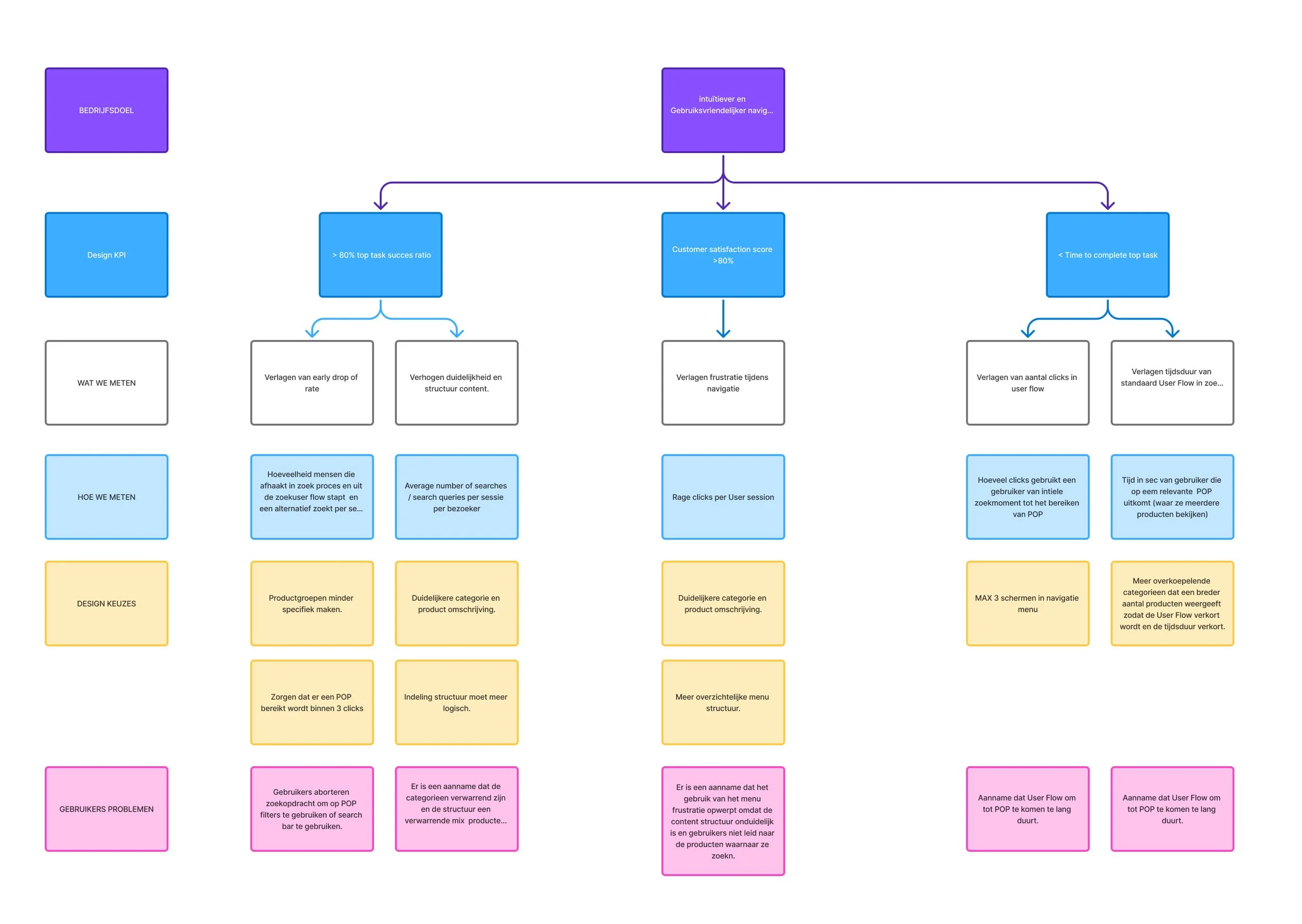 In order to measurer the functionality of the design I created Design KPI’s which I connected to business goals. This makes it able for me to measure a specific design decsion.